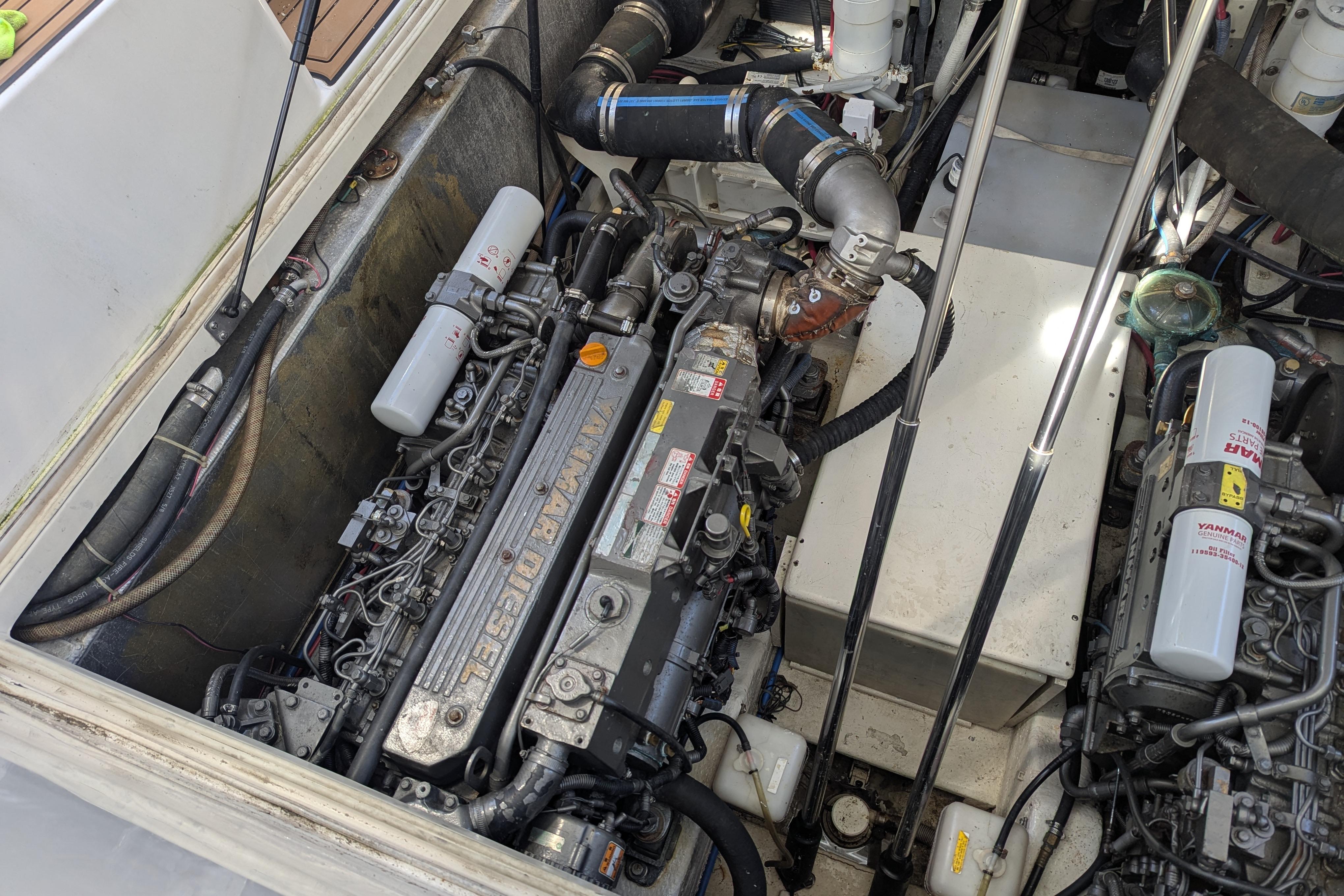 Regularly updated and maintained to a high level and it shows. Re-powered in 2007 with Yanmar 440hp diesels (updated valves) - a significant upgrade over the original 370hp Yanmars. Fully and nicely equipped including Northern Lights 5.5Kw generator, factory hardtop, Simrad Electronics including Autopilot, Aquatraction synthetic teak decking, anchor windlass, more...the list is long and impressive.