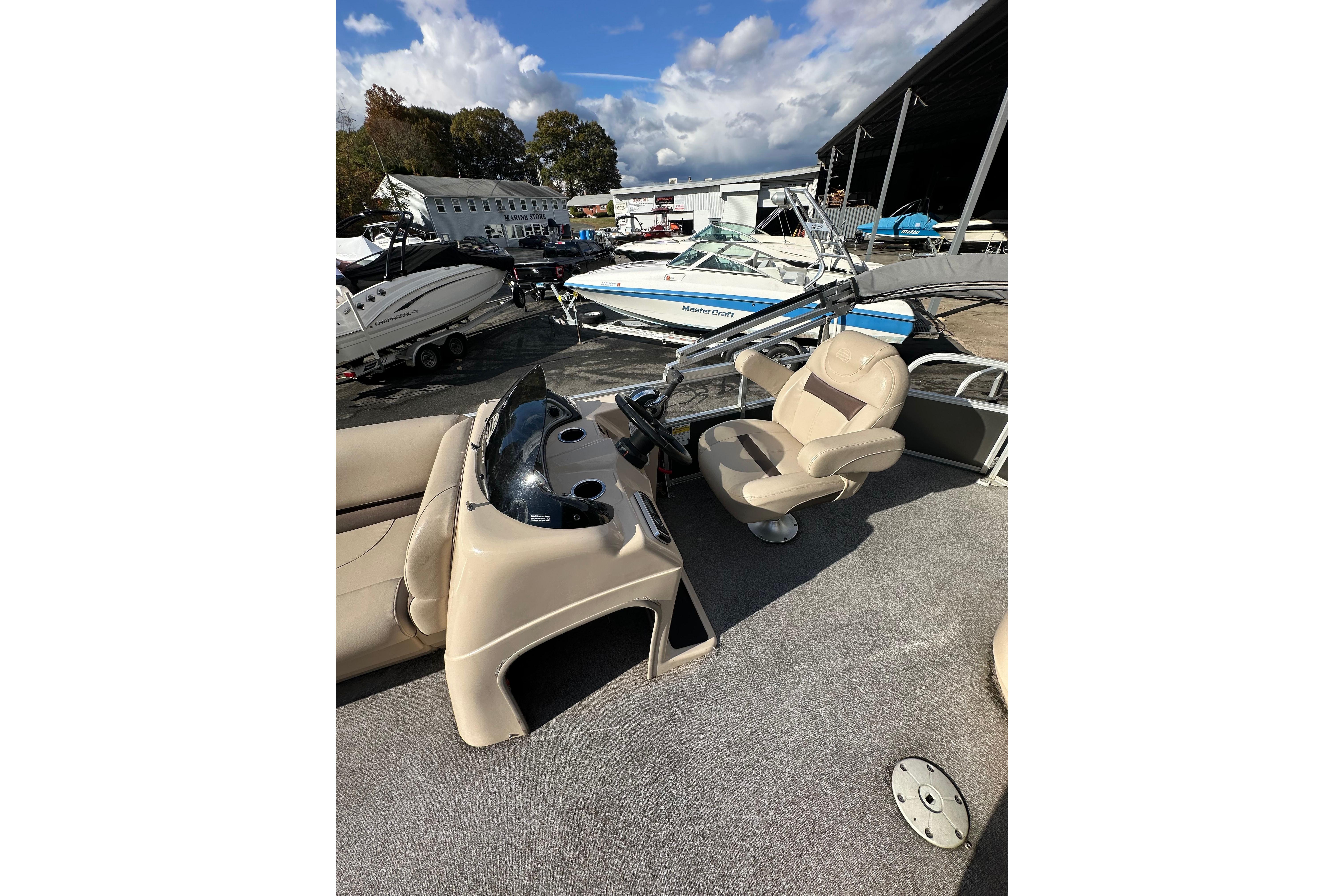 - Molded console w/cooler storage below, helm chair & stereo w/Bluetooth® & MP3 input