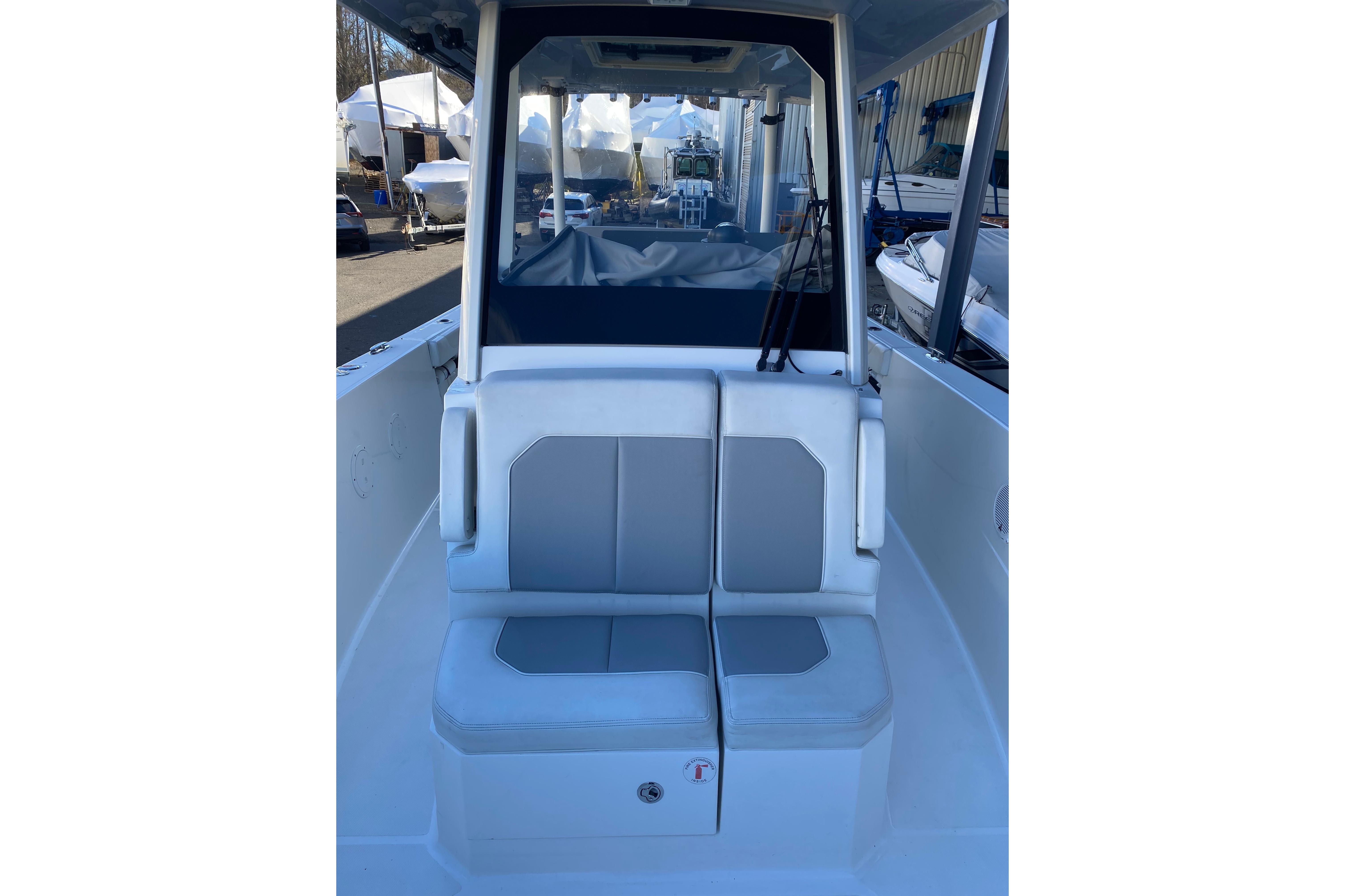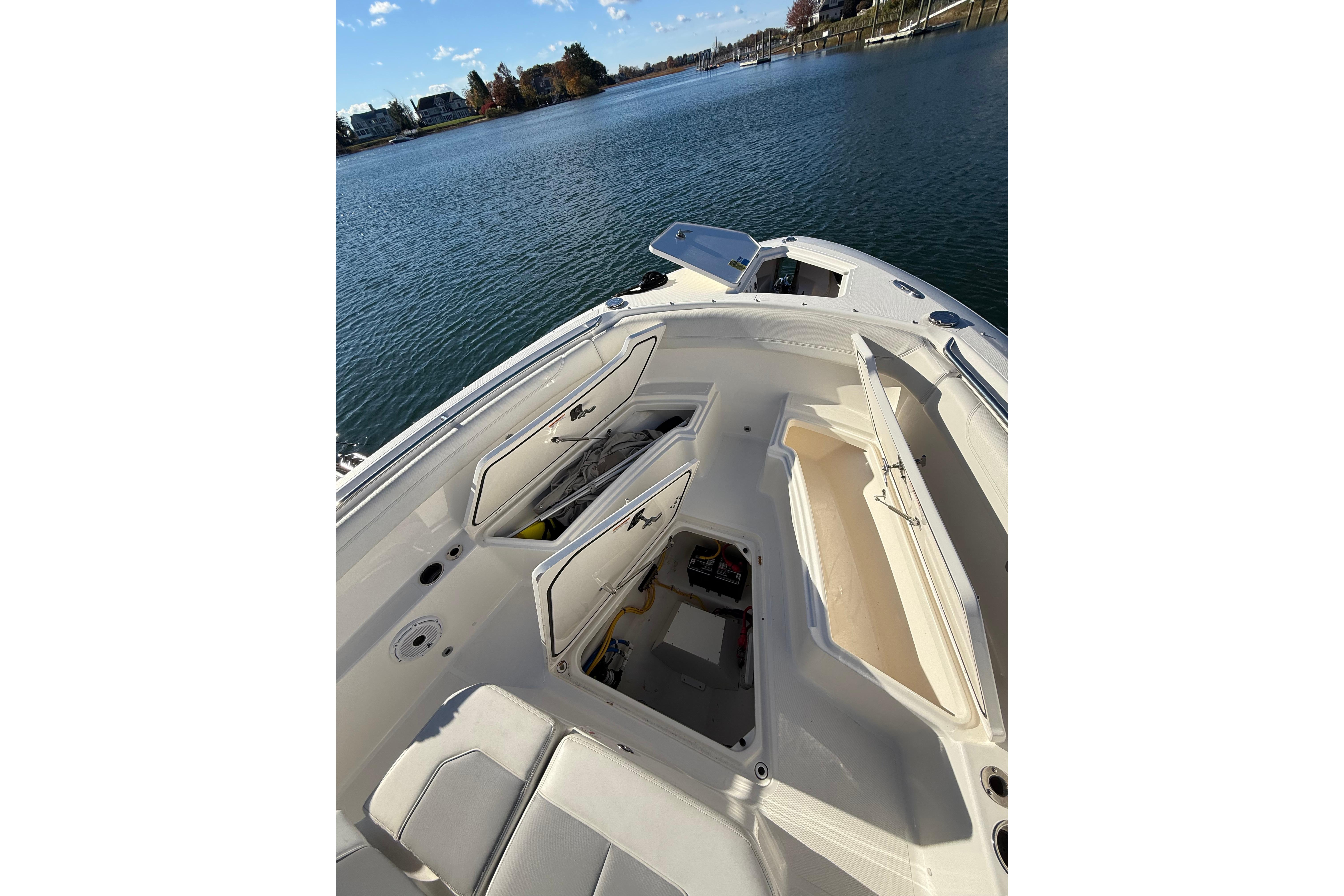 - Molded Forward Bow Seating with Insulated Storage Below, Removable Cushions, Folding Forward Facing Backrests for Port and Starboard Seats