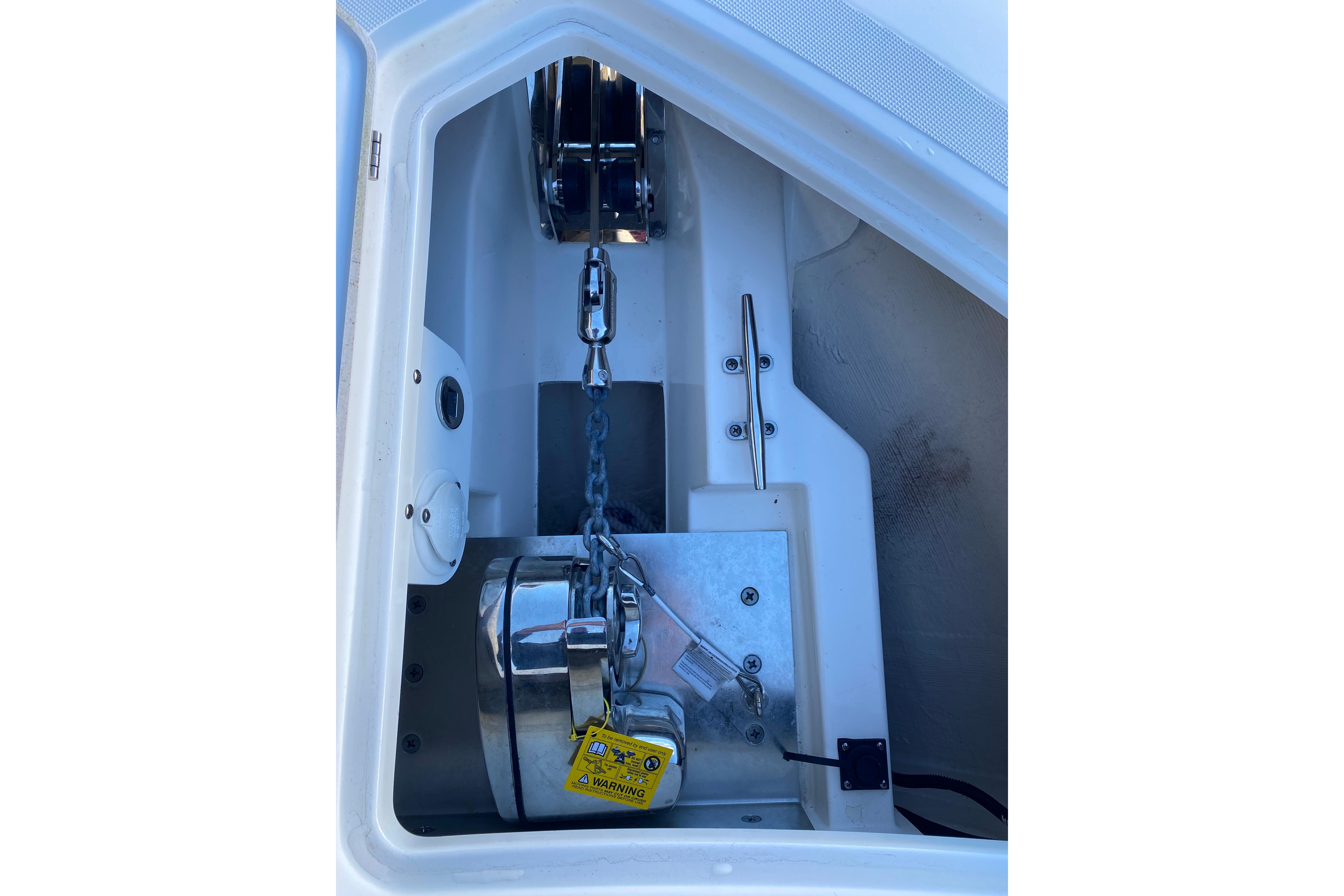 - Flush Mounted Integral Anchor Locker with Fiberglass Lid including: Horizontal Anchor Windlass with Switch at Helm, Remote at Anchor Locker and Raw Water Washdown