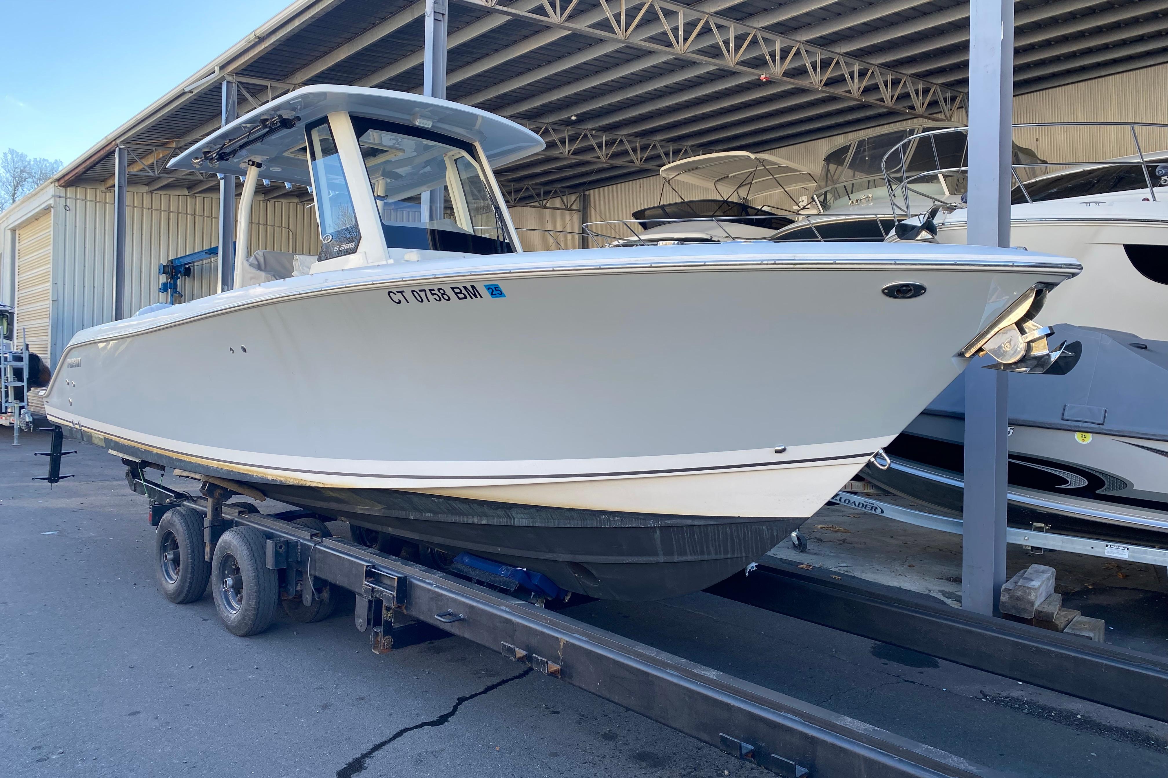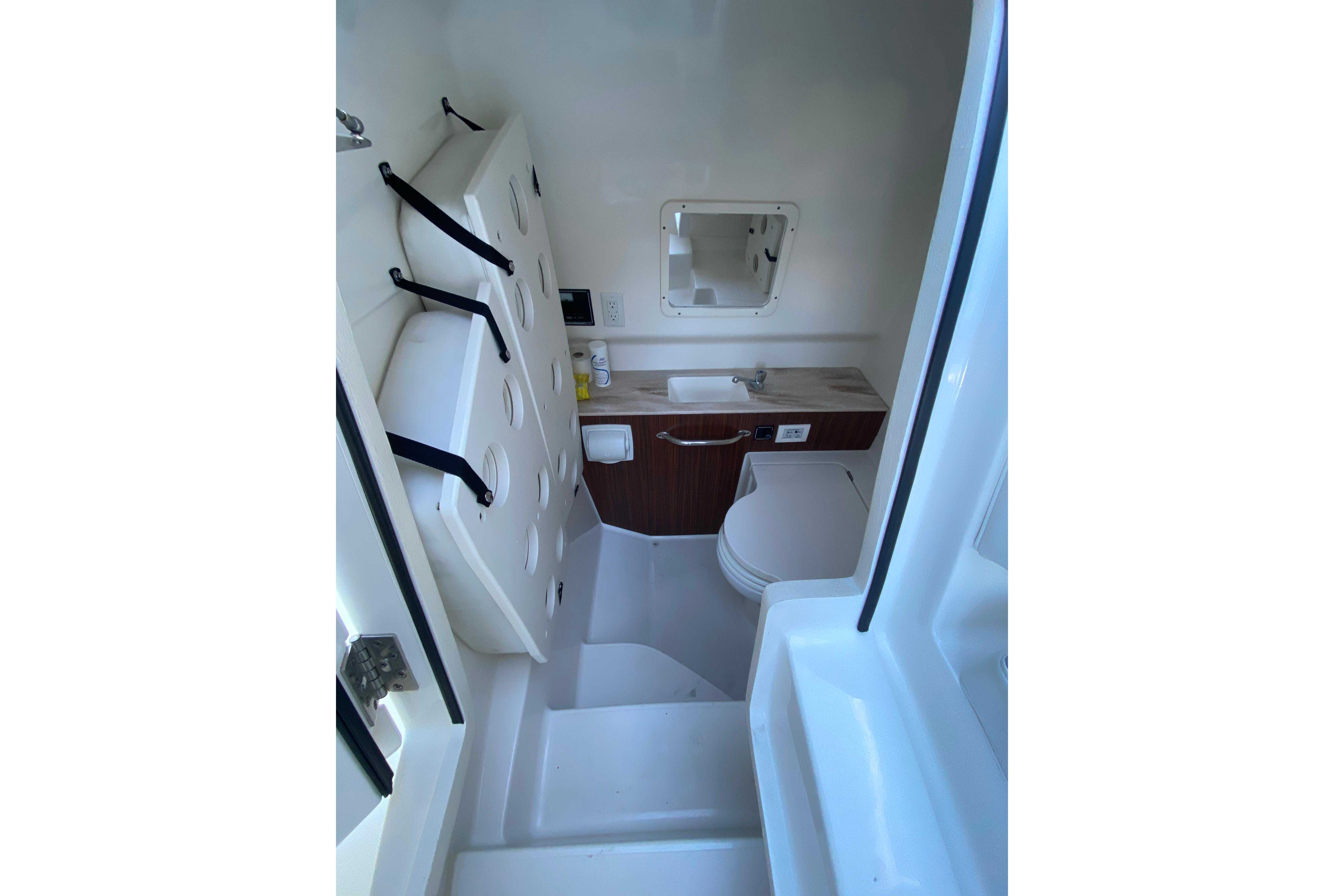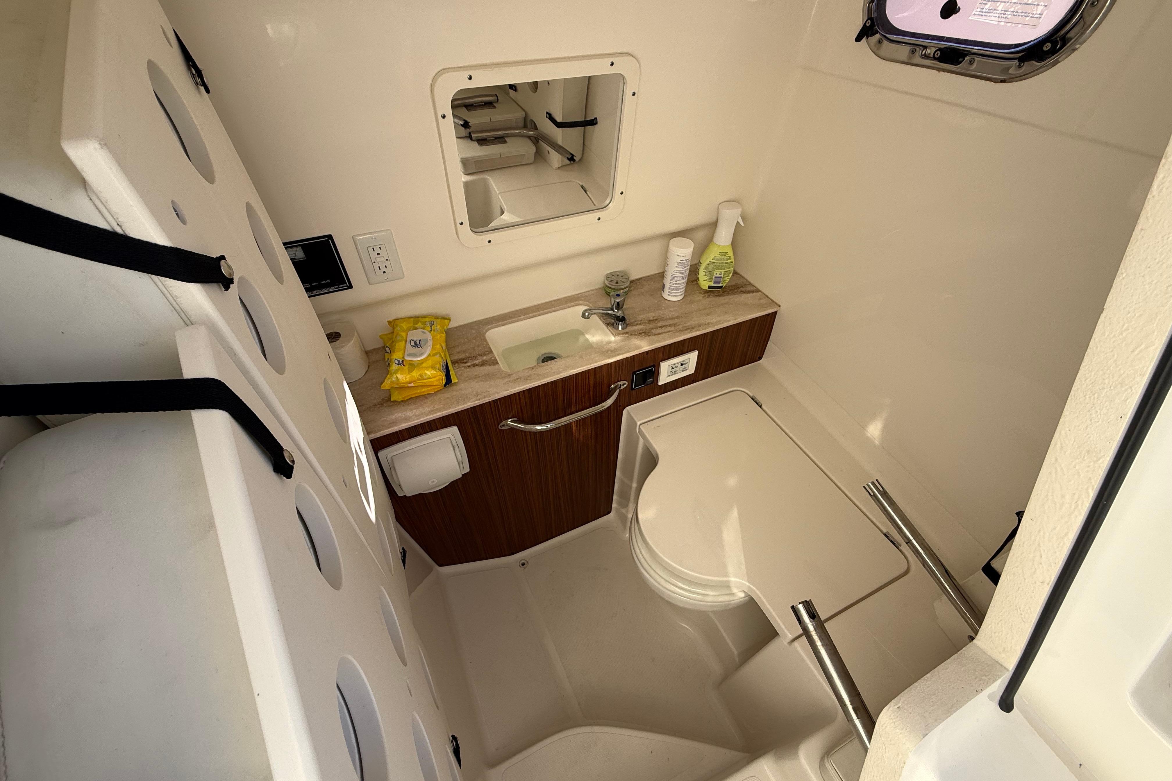 The S 288 Sport is designed to have everything you need and nothing you don't. The Sport series styling continues with the S 288, including oversized fiberglass integrated hardtop and windshield system, updated classic sheerline, through-stem anchor system and integrated transom extensions. The console includes a full enclosed head. On deck, plenty of seating with storage is available in the bow area and aft in the cockpit.