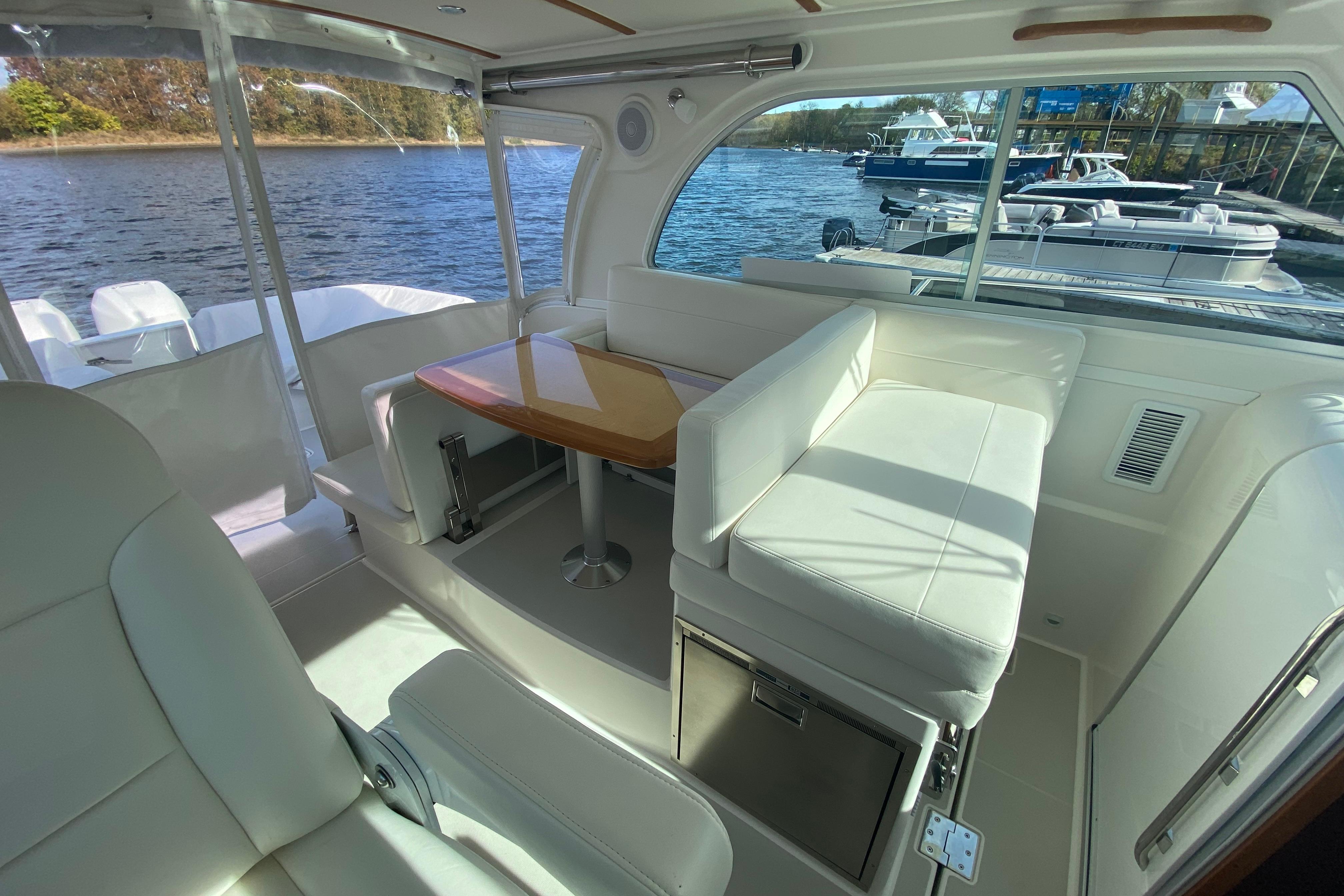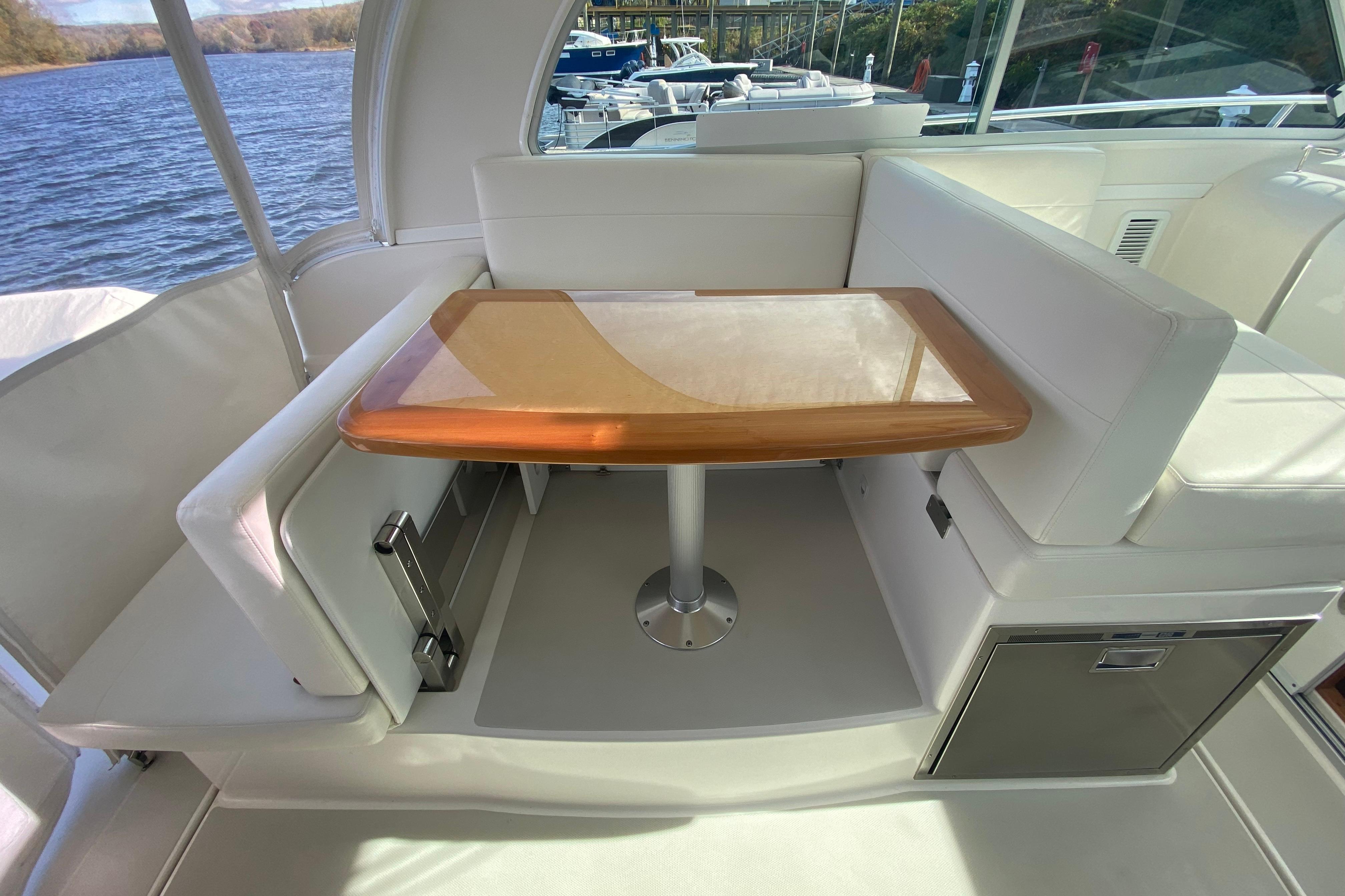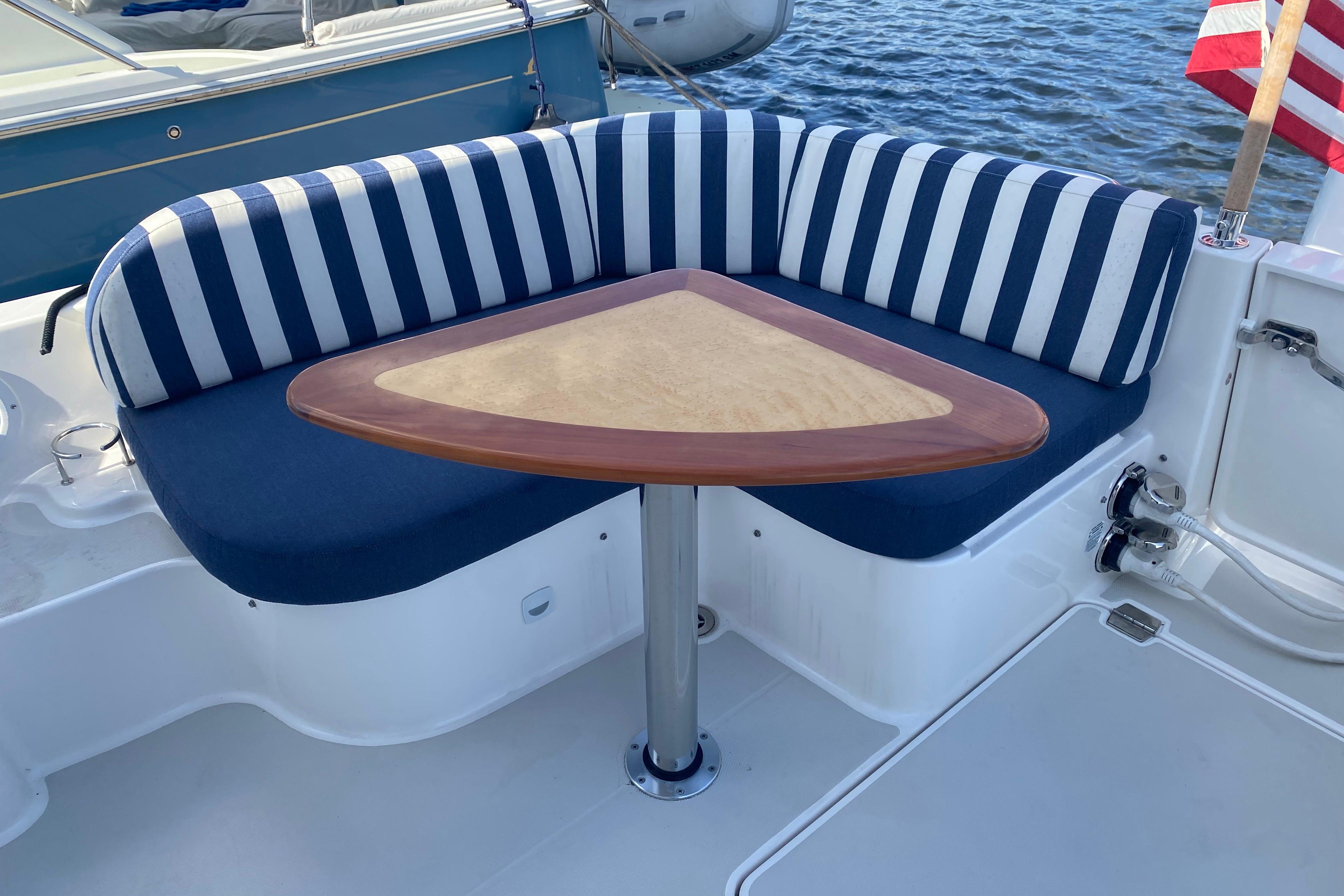 - Aft dinette seat converts to face cockpit