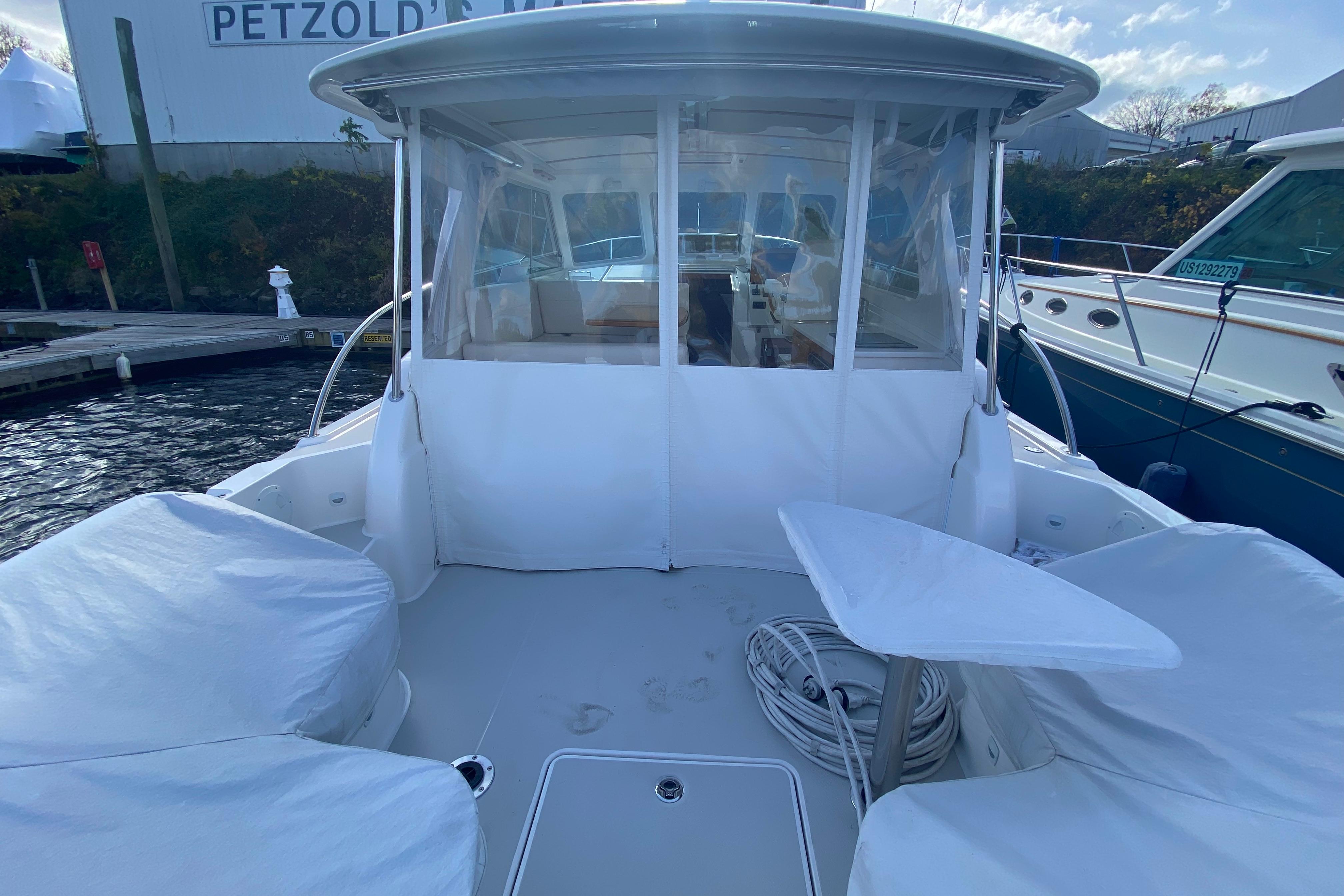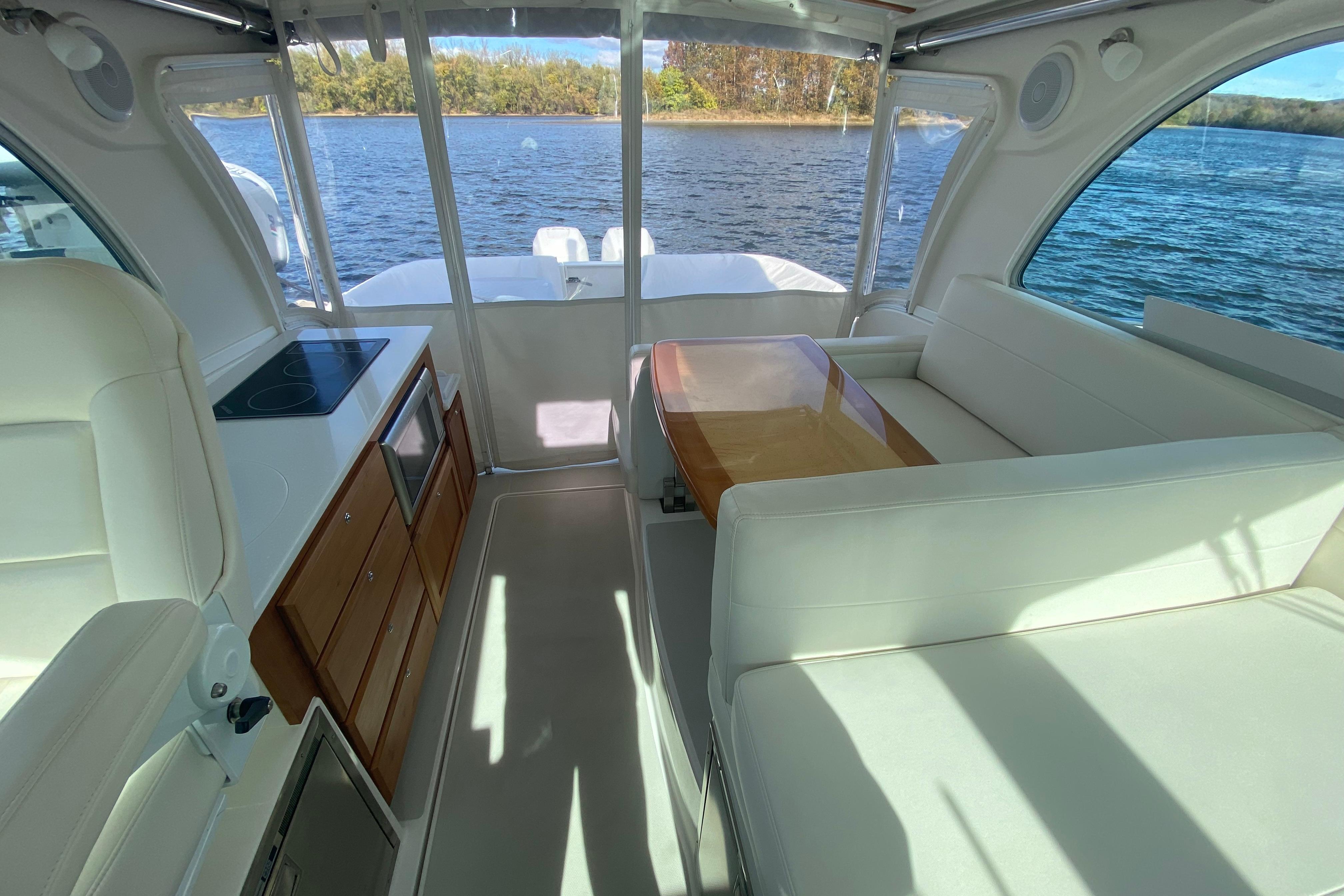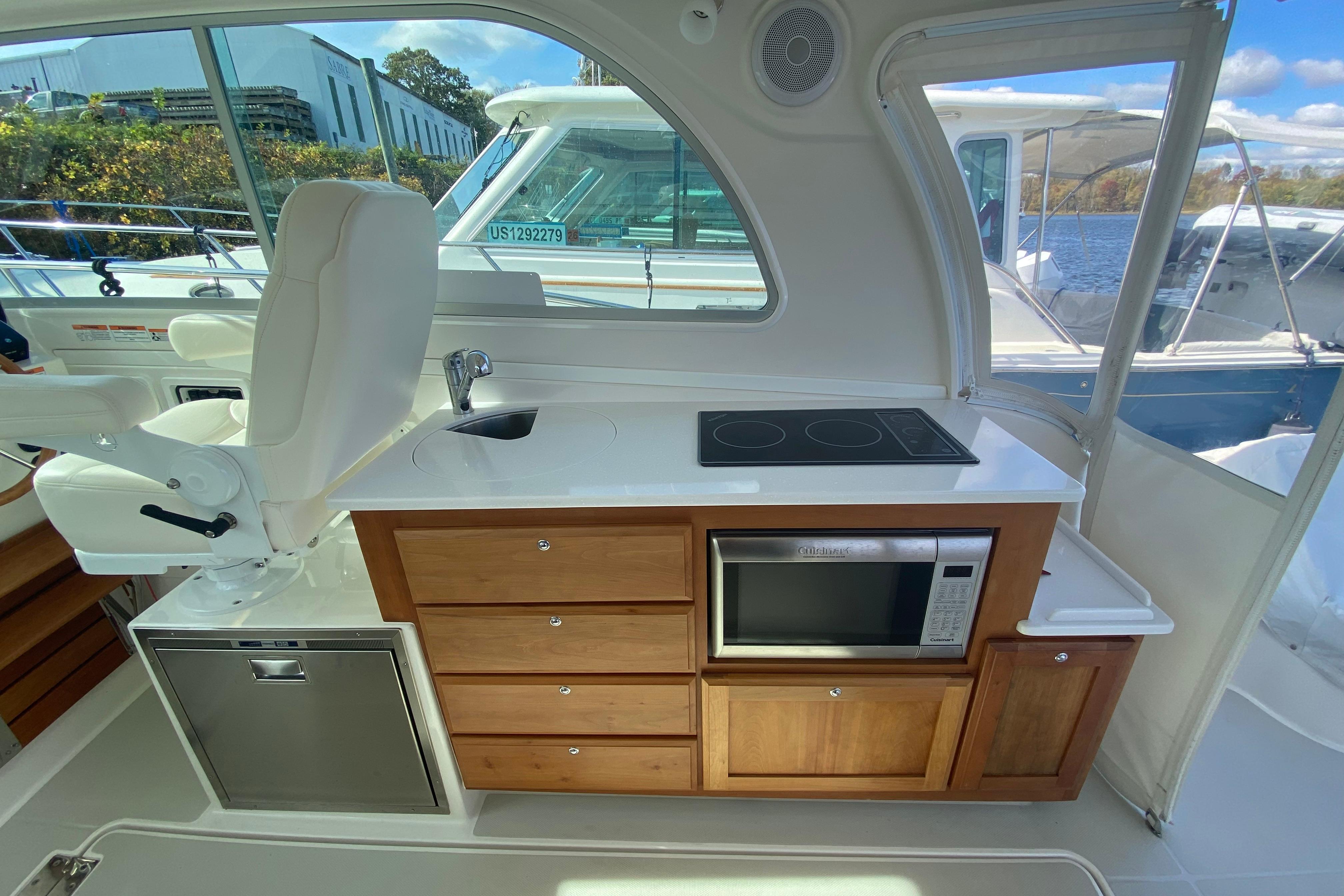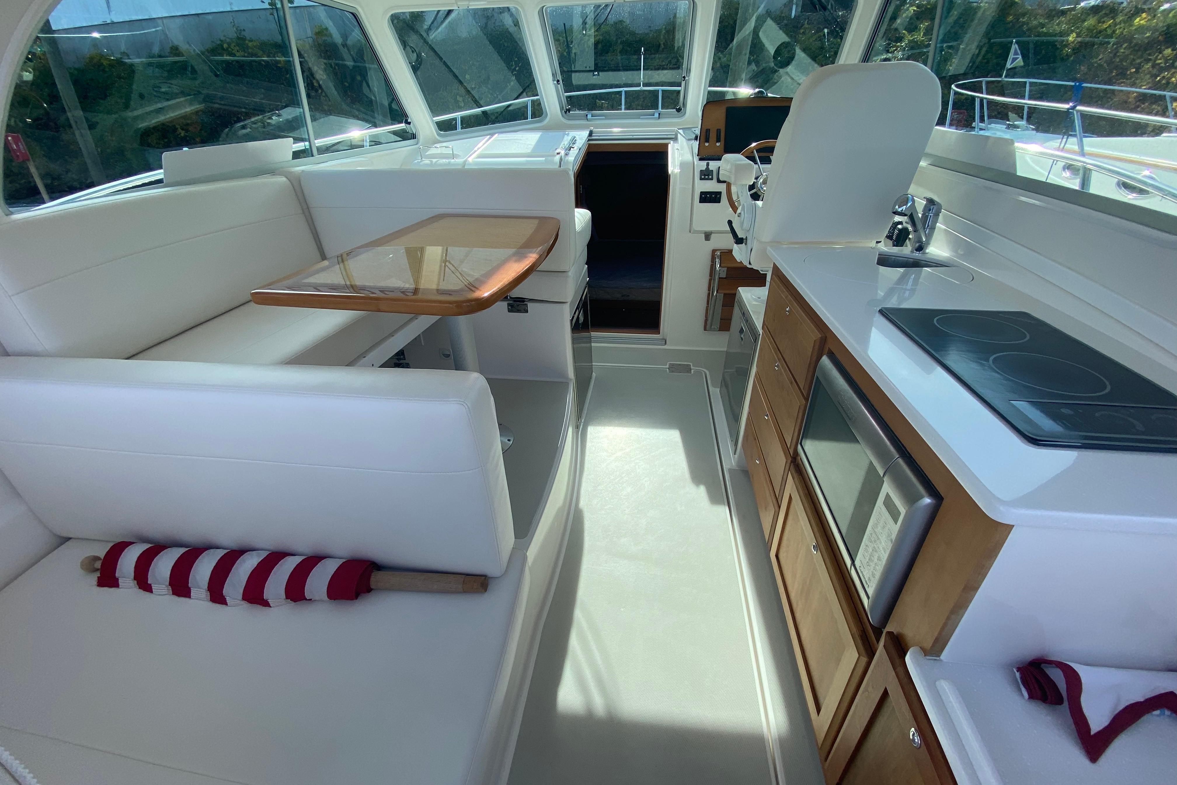 - 12V outlet at helm and in cabin