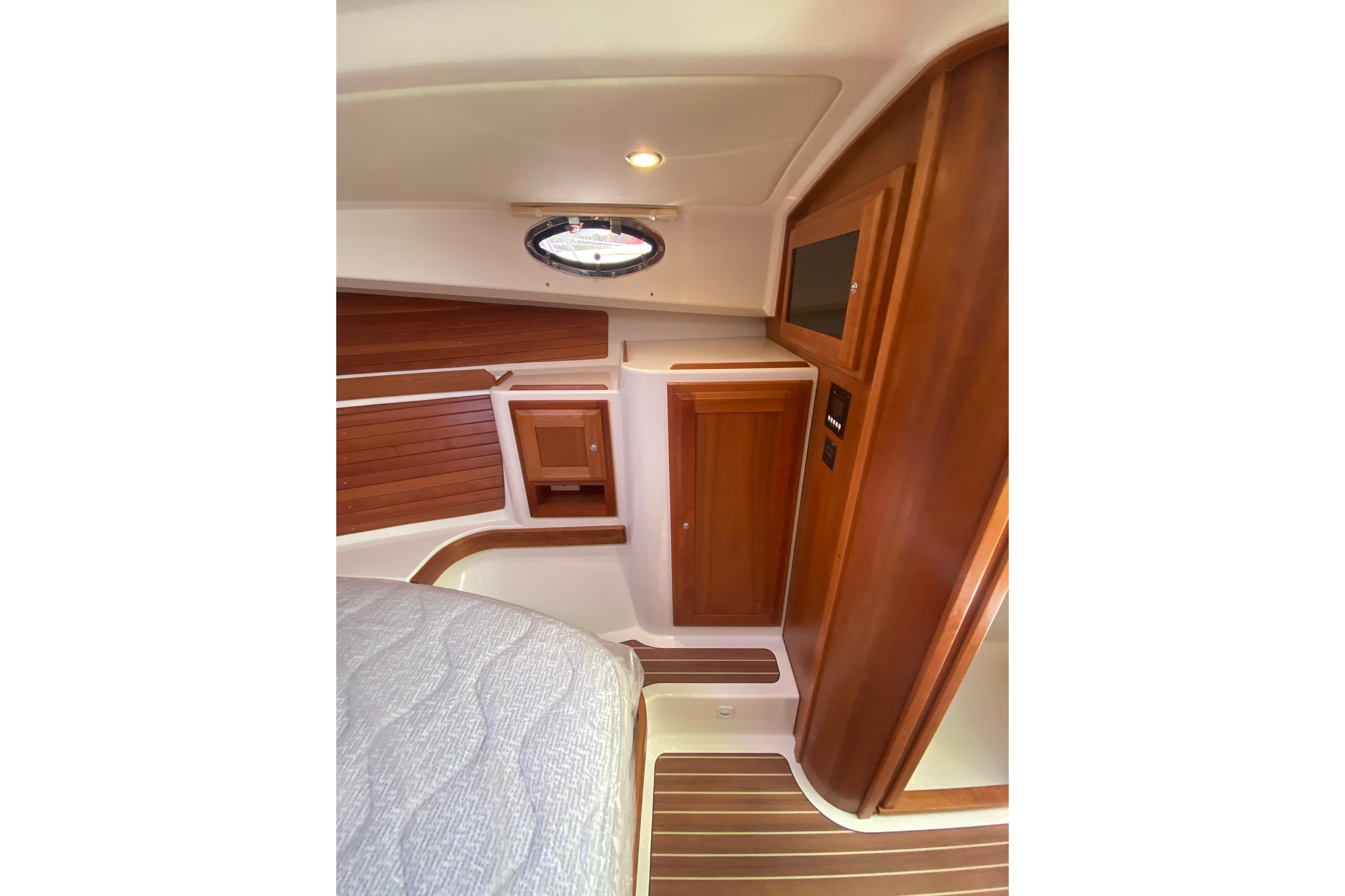 - Island double berth w/ drawers and storage below