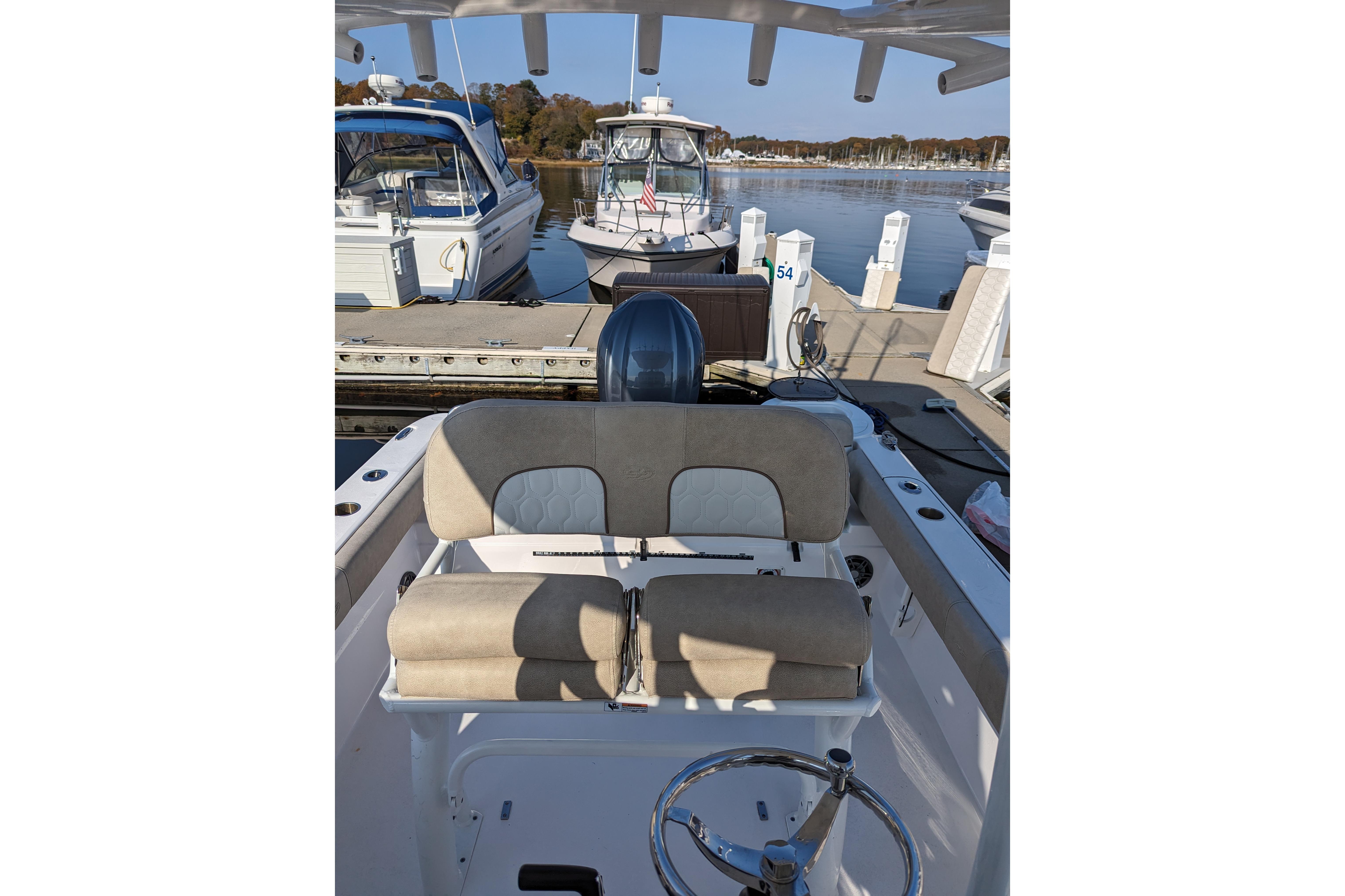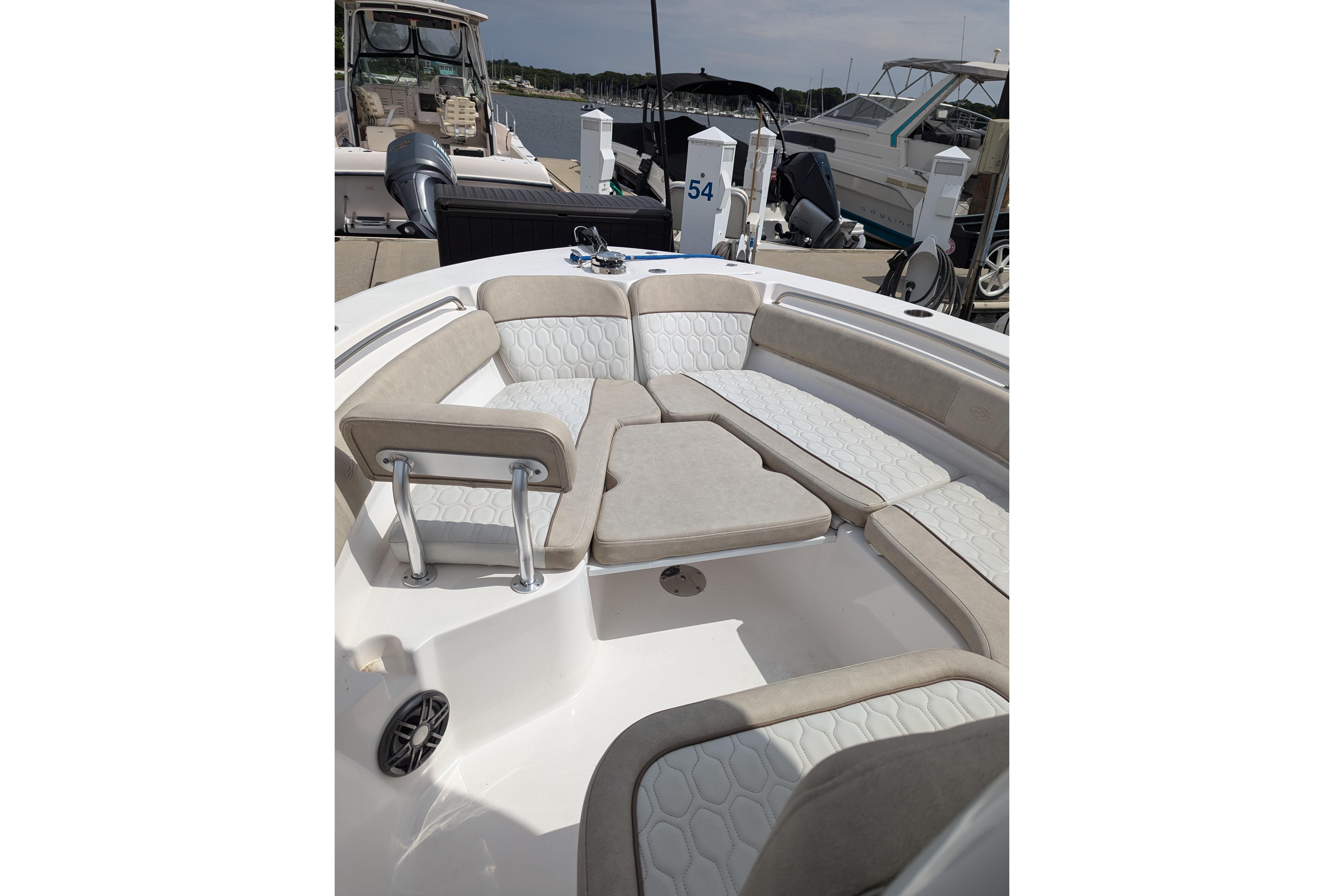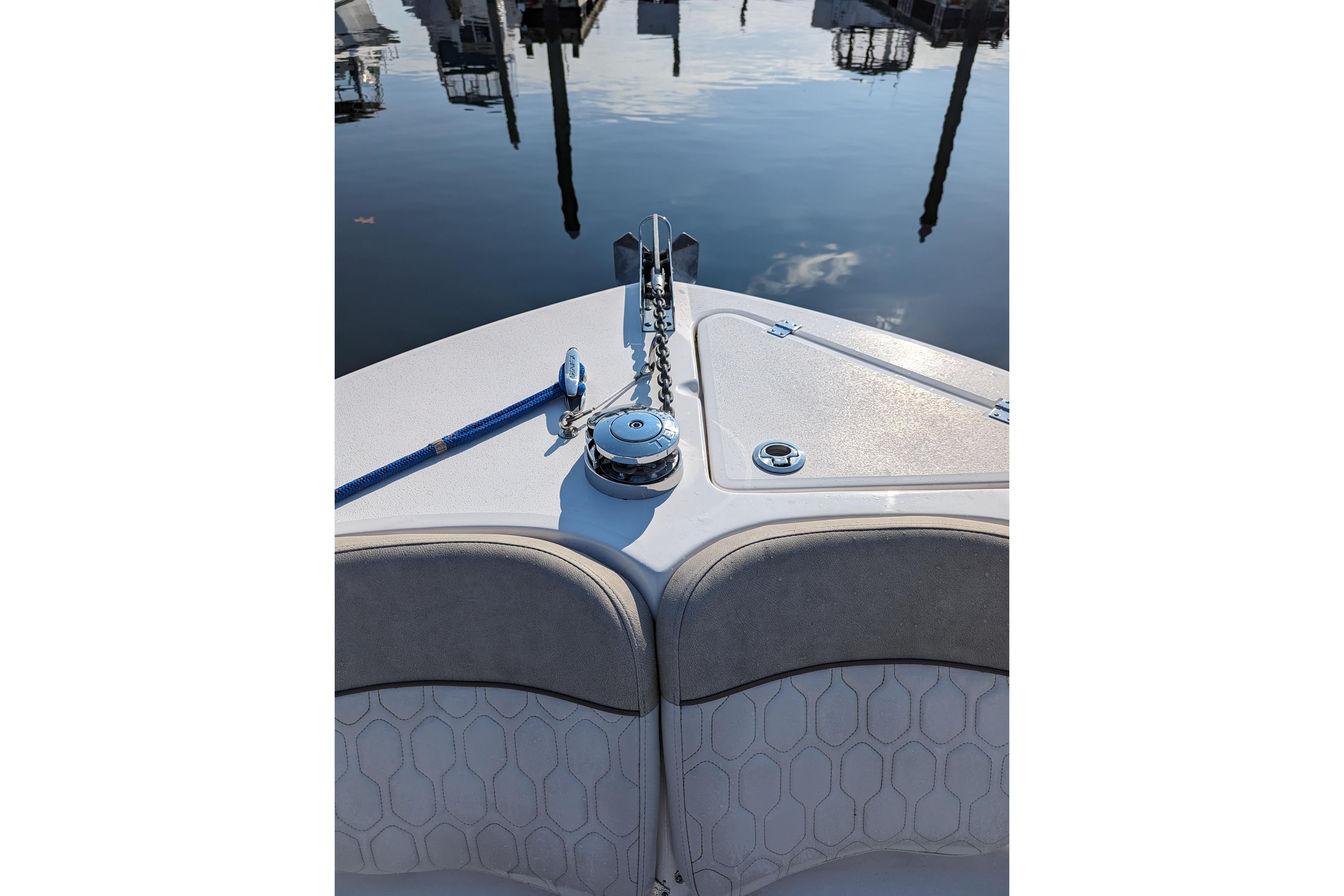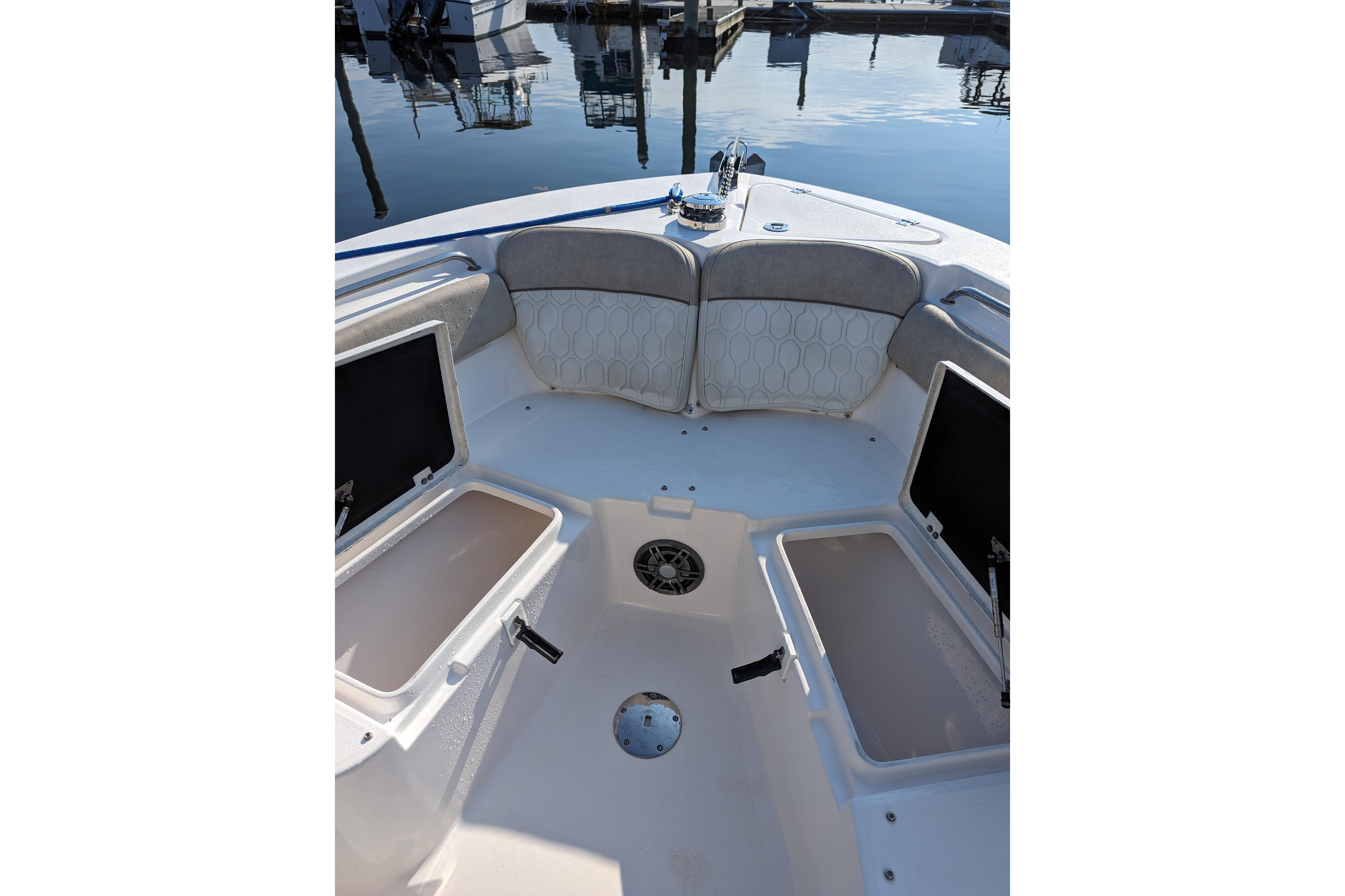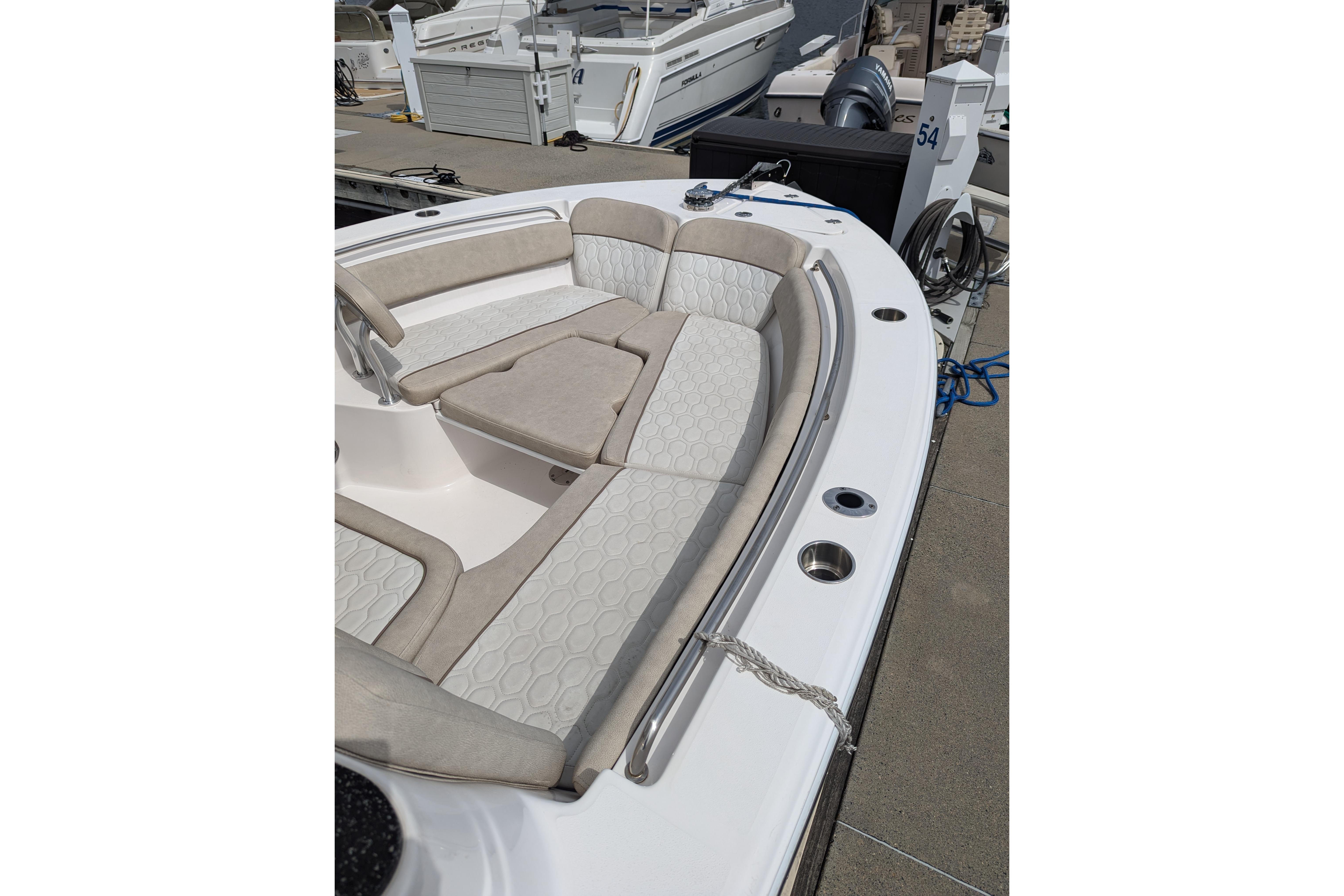 Powered by a single Yamaha F300XCA outboard with low hours, full Garmin electronics suite including radar, anchor windlass, electric head, much more...